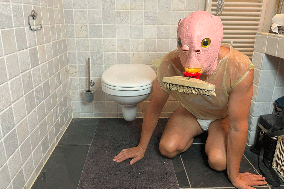Je doet verder niet veel, maar laat het vooral over aan aan zijn fantasie. “Even insmeren, zodat hij er straks makkelijk doorheen glijdt…“